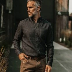 The Explorer Shirt In Coal Herringbone Wool