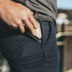 We took our bespoke chino and reimagined it with hidden zippers, reflective edge casing, and a 12 oz. merino blend. Limited in Navy.