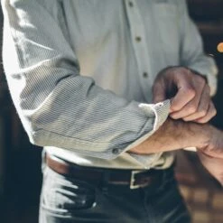 Our staple shirt has a tailored fit with a triple button collar. 7 years in the marking, our oxford comes in a 7-oz. Indigo Selvage Stripe fabric. In-Stock now.