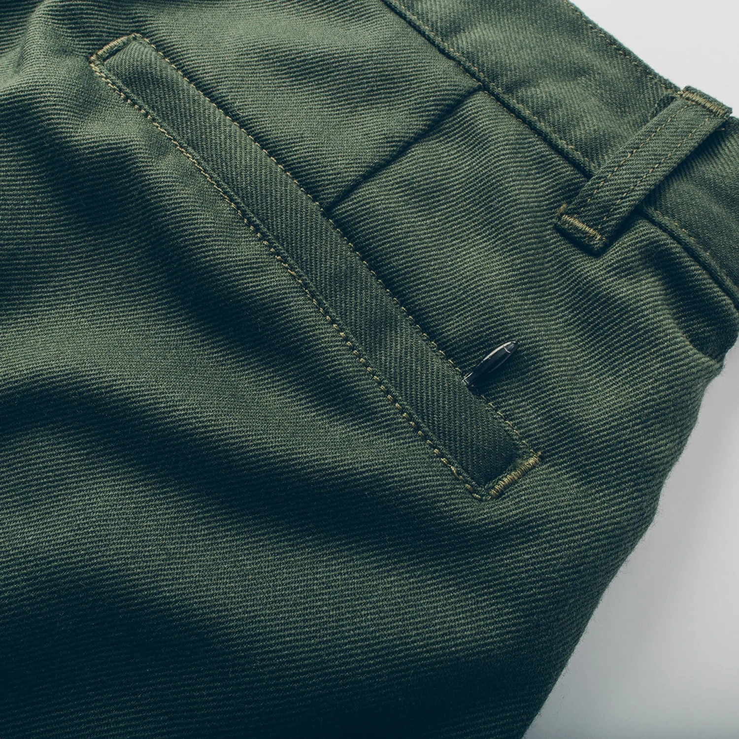 - Hidden zipper on back right welt pocket to keep wallet secure.
