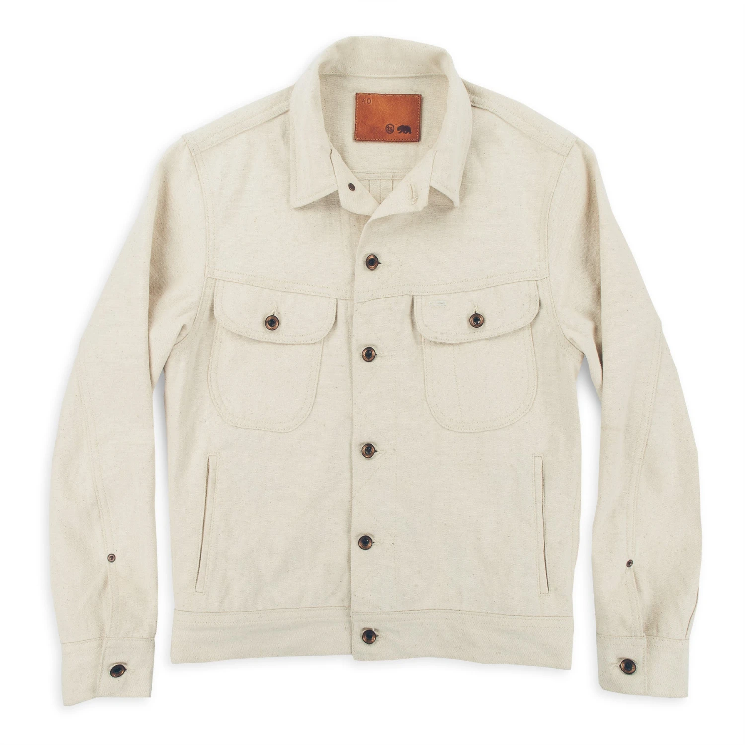 - Custom copper YKK doughnut buttons & rivets.