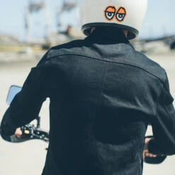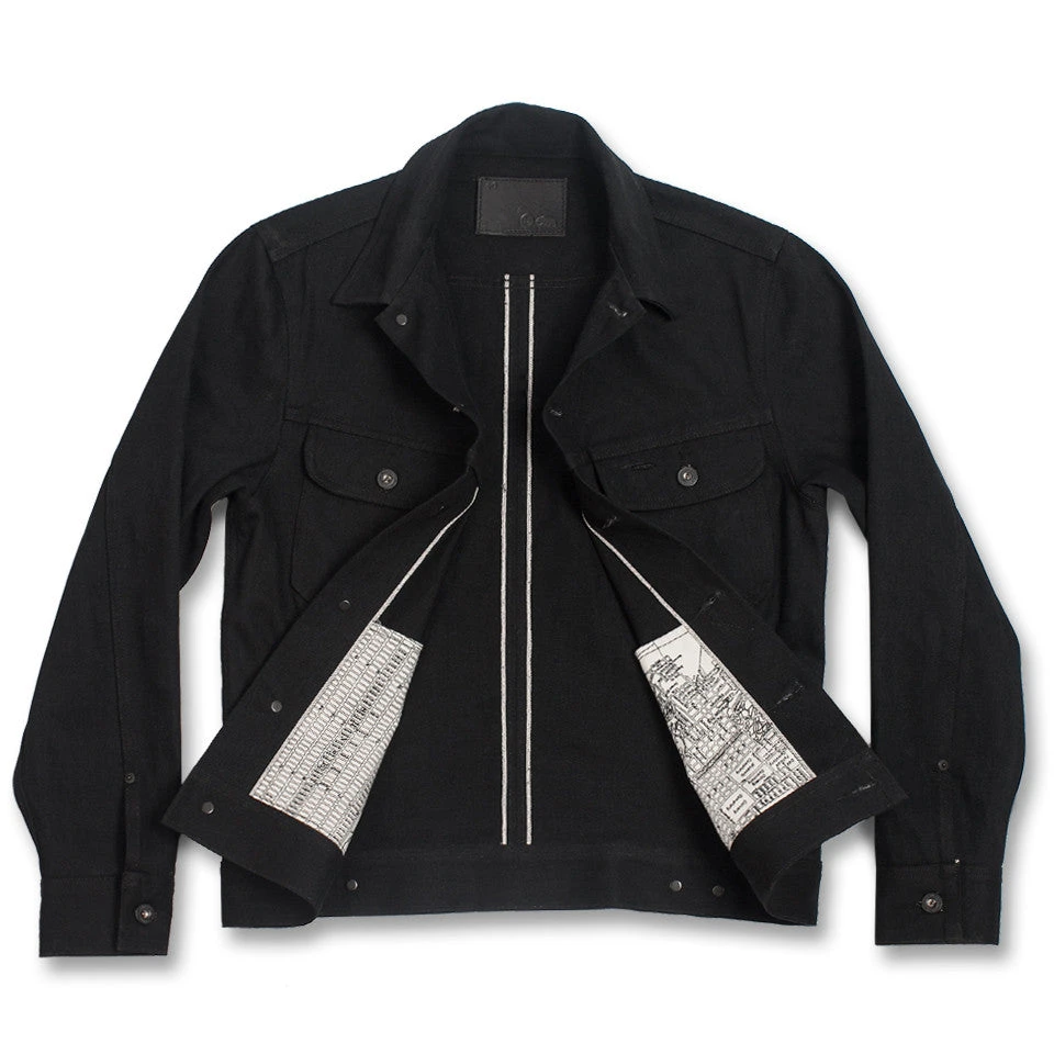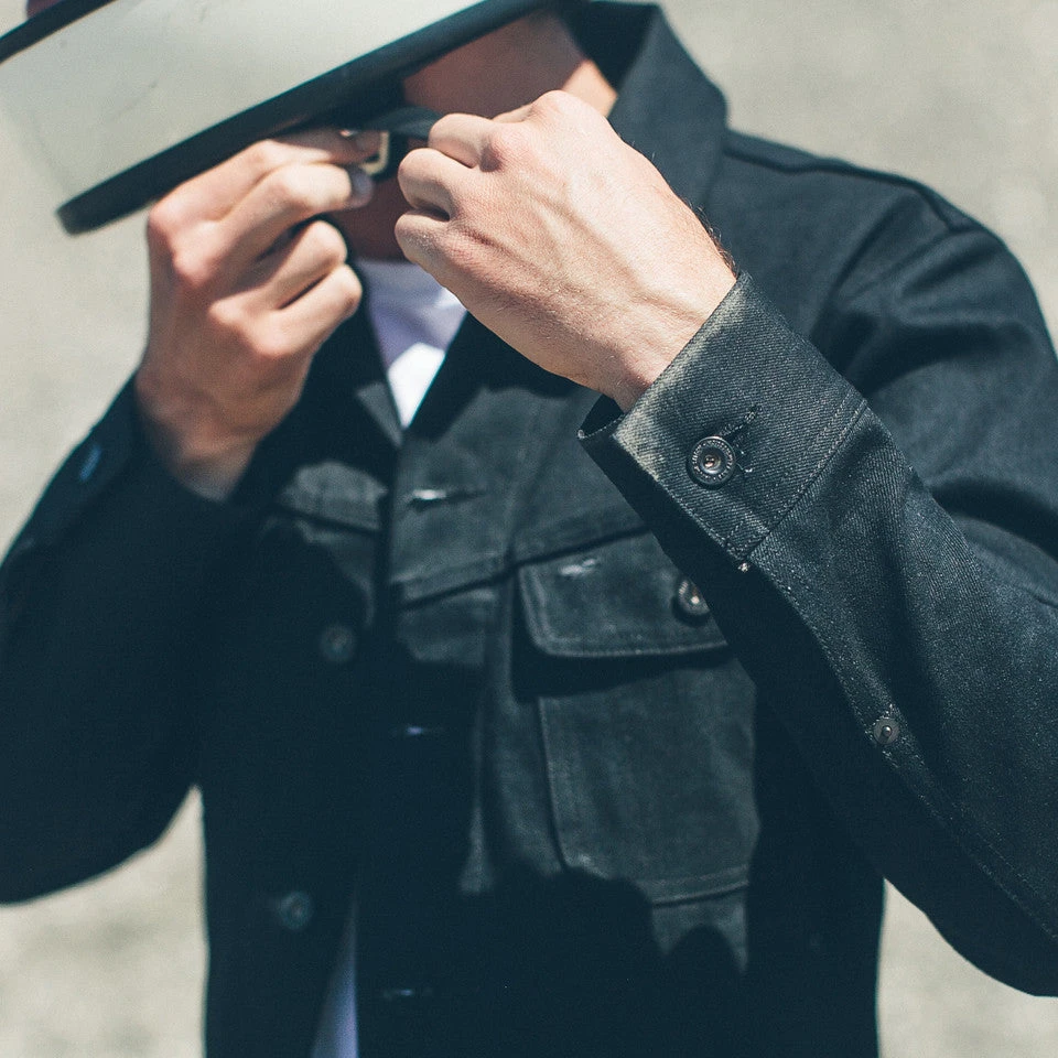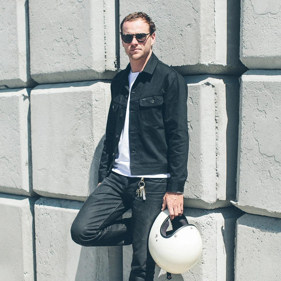 The Long Haul Jacket modernizes a classic look but maintains the clean lines and vintage fit. In a black Yoshiwa Mills selvage denim, Shop now.