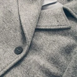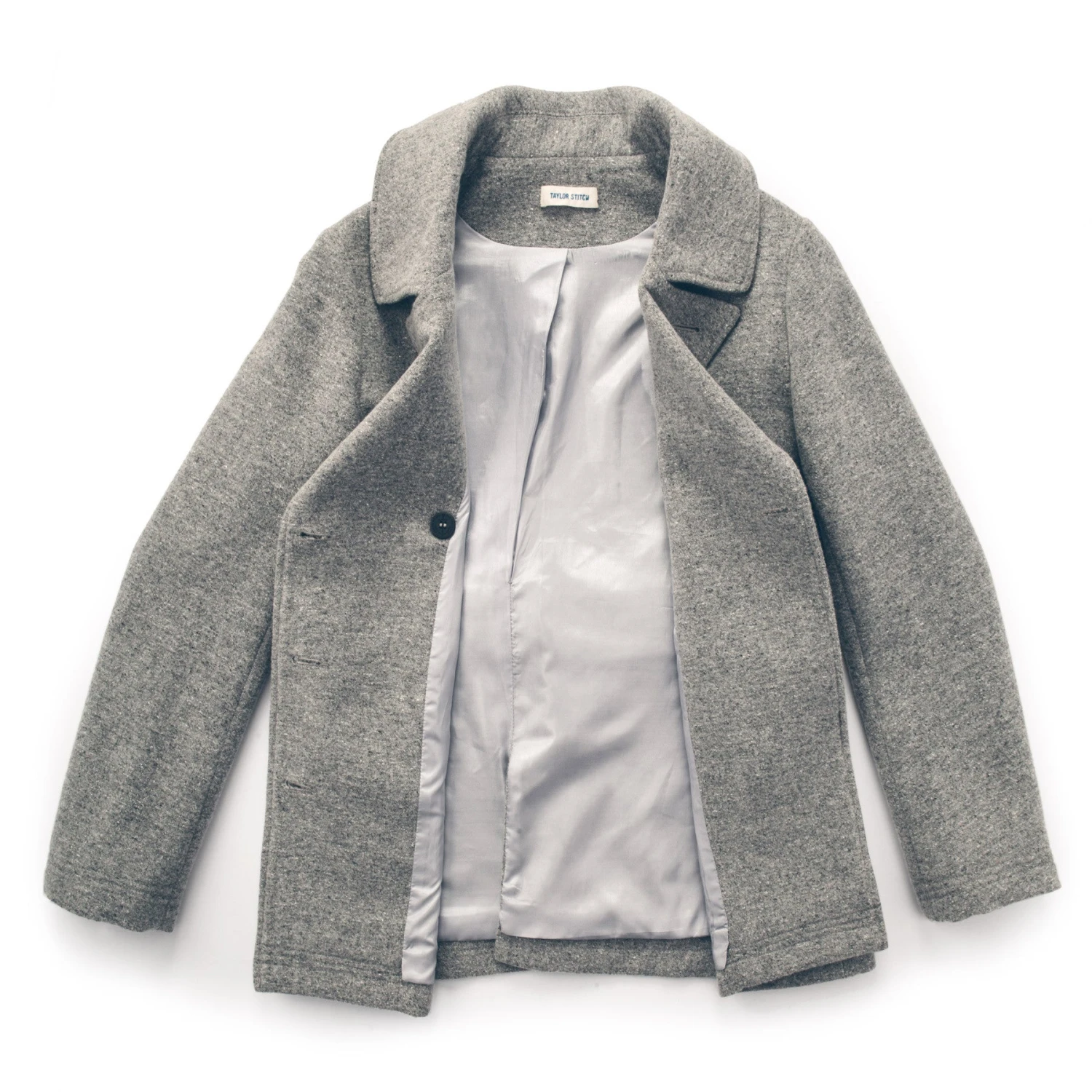- Classic double breasted shape with foldover collar.