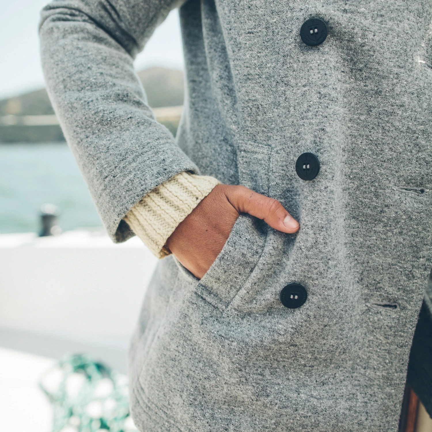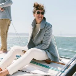 The Mariner Peacot is made of Italian boiled lambswool, making it a wardrobe staple on a cold evening over a dress or thrown over a button down. In-Stock Now.Â