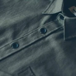 A clean-fronted, big-buttoned, hard-wearing shirt for when gas and grease beckon. Shop in Moss.