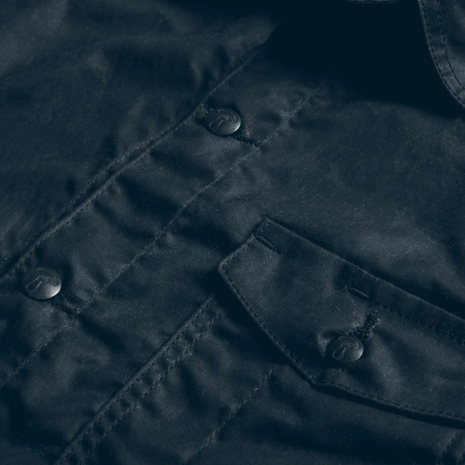 - Custom YKK black alloy mushroom buttons.