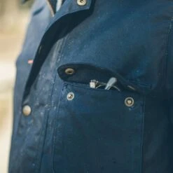 The Rover is our jacket made for foul weather. The moleskin body lining keeps you warm while the waxed canvas makes it water-resistant. In-stock in Navy.