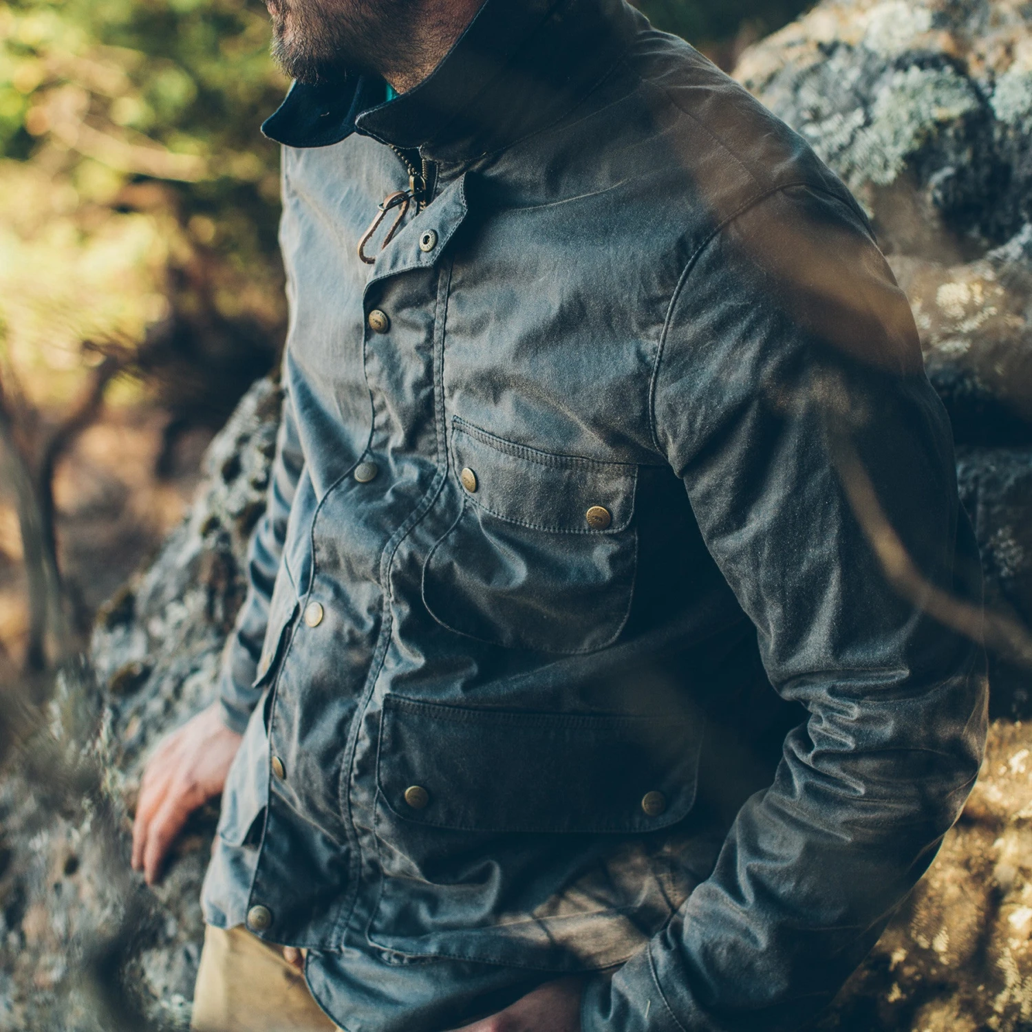 The Rover is our jacket made for foul weather. The moleskin body lining keeps you warm while the waxed canvas makes it water-resistant. In-stock in Slate.