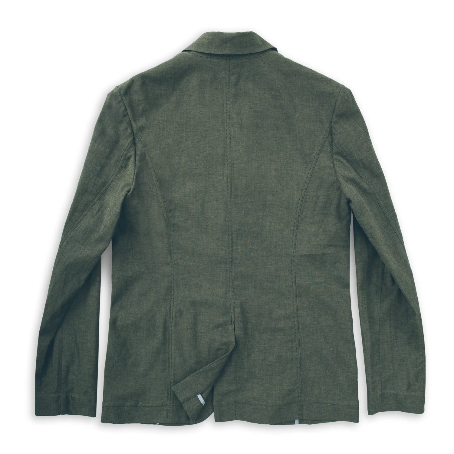 - Chambray-wrapped seams on inside placket, hem & center back vent.
