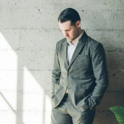 - Italian milled wool/linen chambray with a touch of stretch.