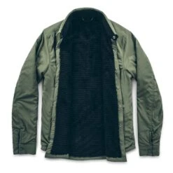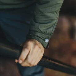 - Brushed tricot featured on inside collar stand, pocket linings, and pocket bags.