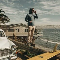 - Model is 6’1″, wearing a Small.