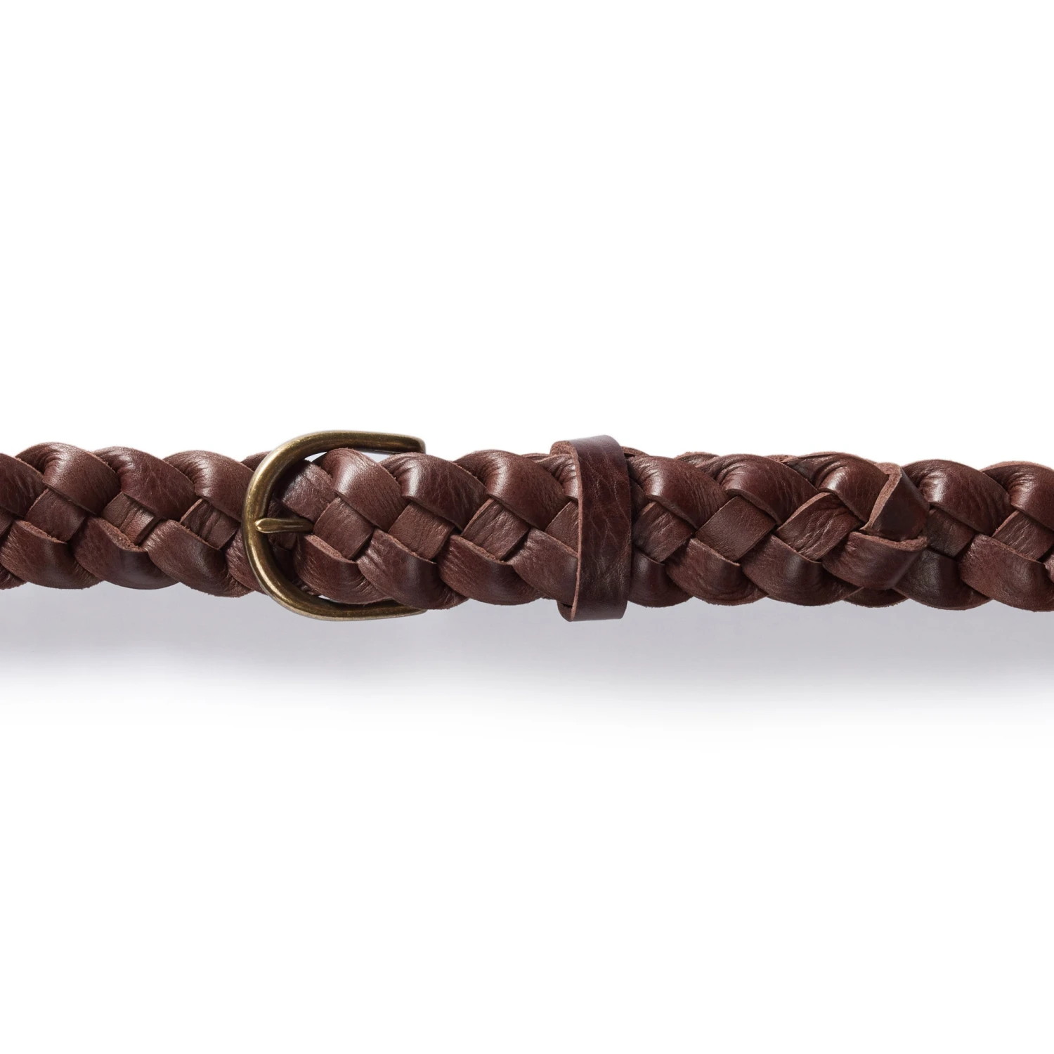 - Rounded antique brass buckle.