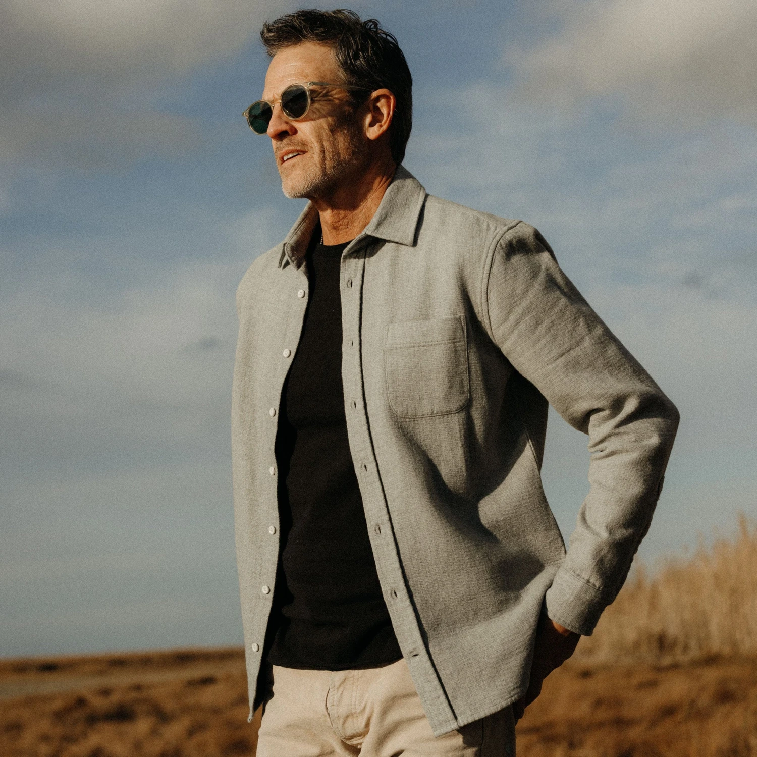 The California in Ash Heather Double Cloth from Taylor Stitch