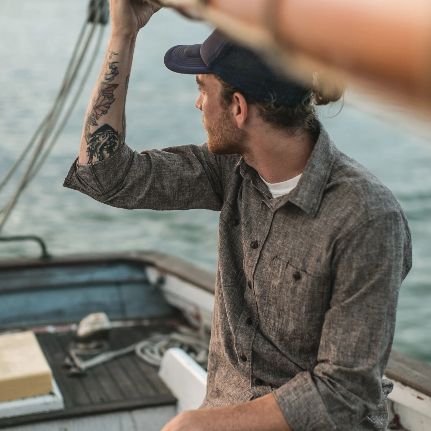 The California In Brown Hemp Chambray