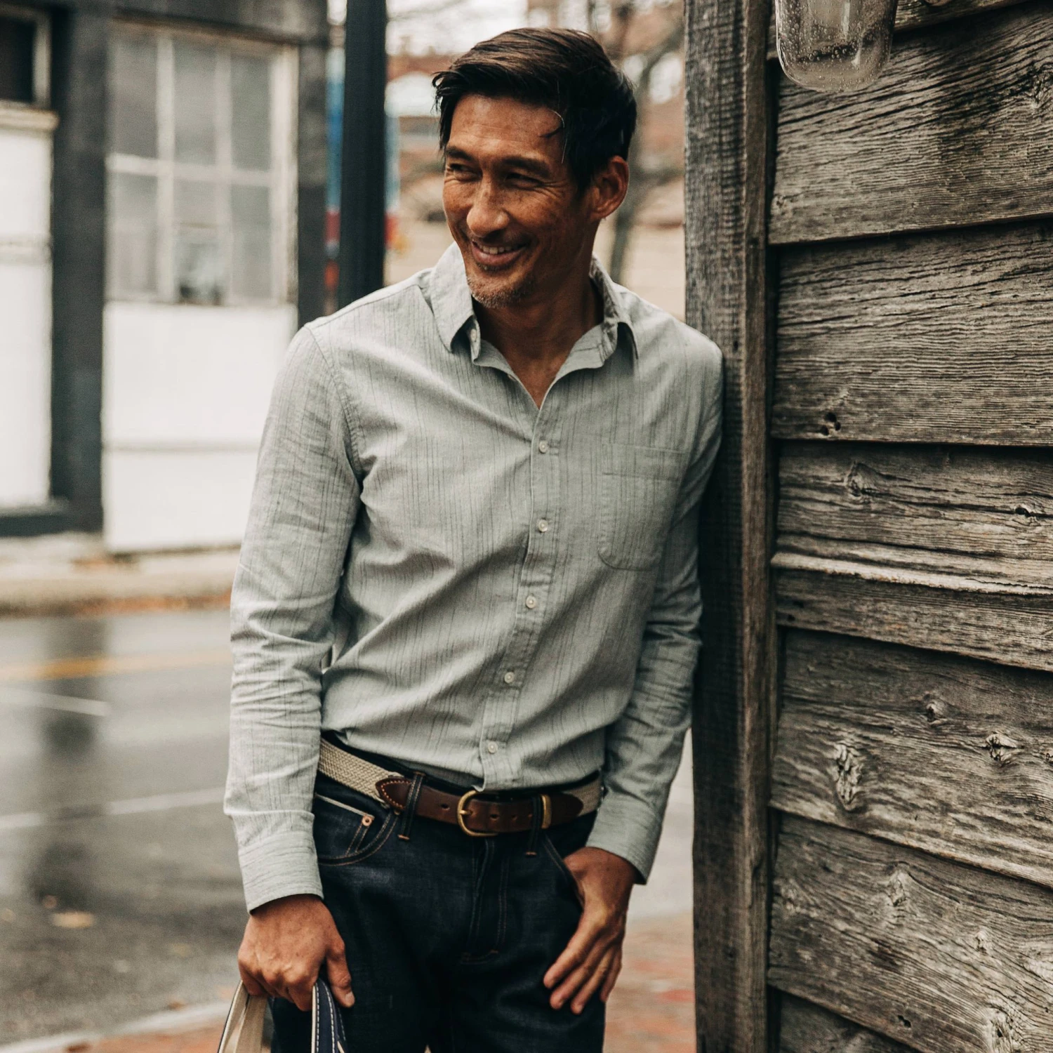 The California in Midnight Slub Micro Stripe from Taylor Stitch