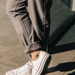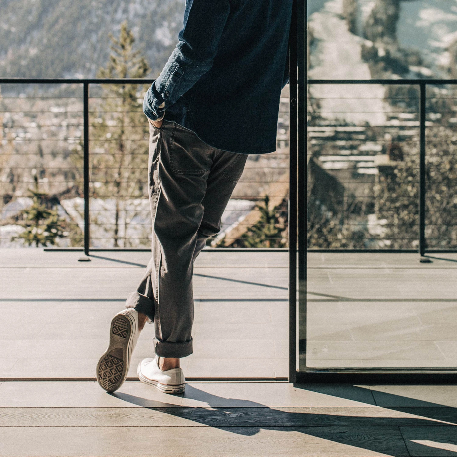 The Camp Pant in Charcoal Reverse Sateen by Taylor Stitch