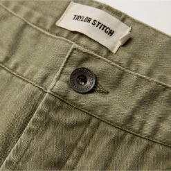 The Camp Pant in Olive Herringbone from Taylor Stitch