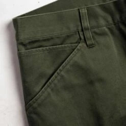 The Camp Pant in Olive Reverse Sateen by Taylor Stitch
