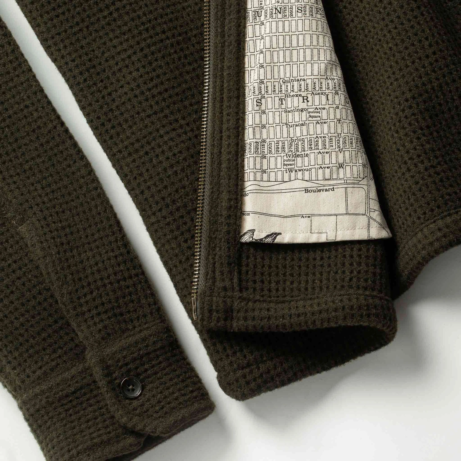 A timeless silhouette that’s built like a tank. The Coit Jacket in Olive Waffle by Taylor Stitch.