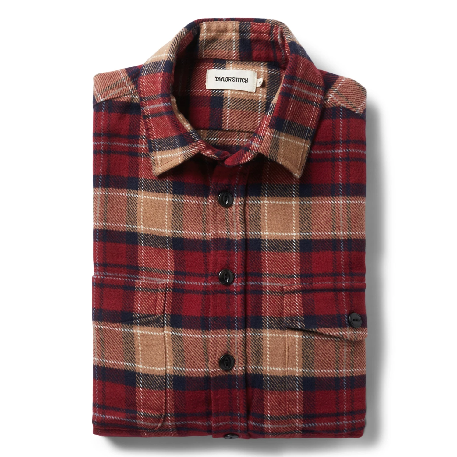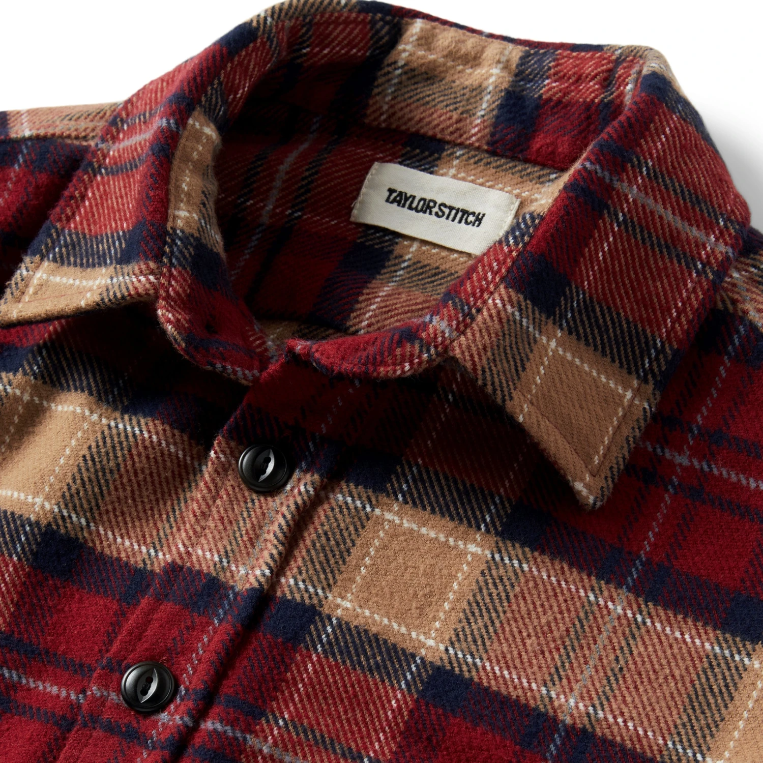 - 9-oz. 100% brushed organic cotton twill flannel, custom developed for Taylor Stitch.