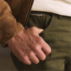The Democratic Jean in Olive Nihon Menpu Selvage from Taylor Stitch