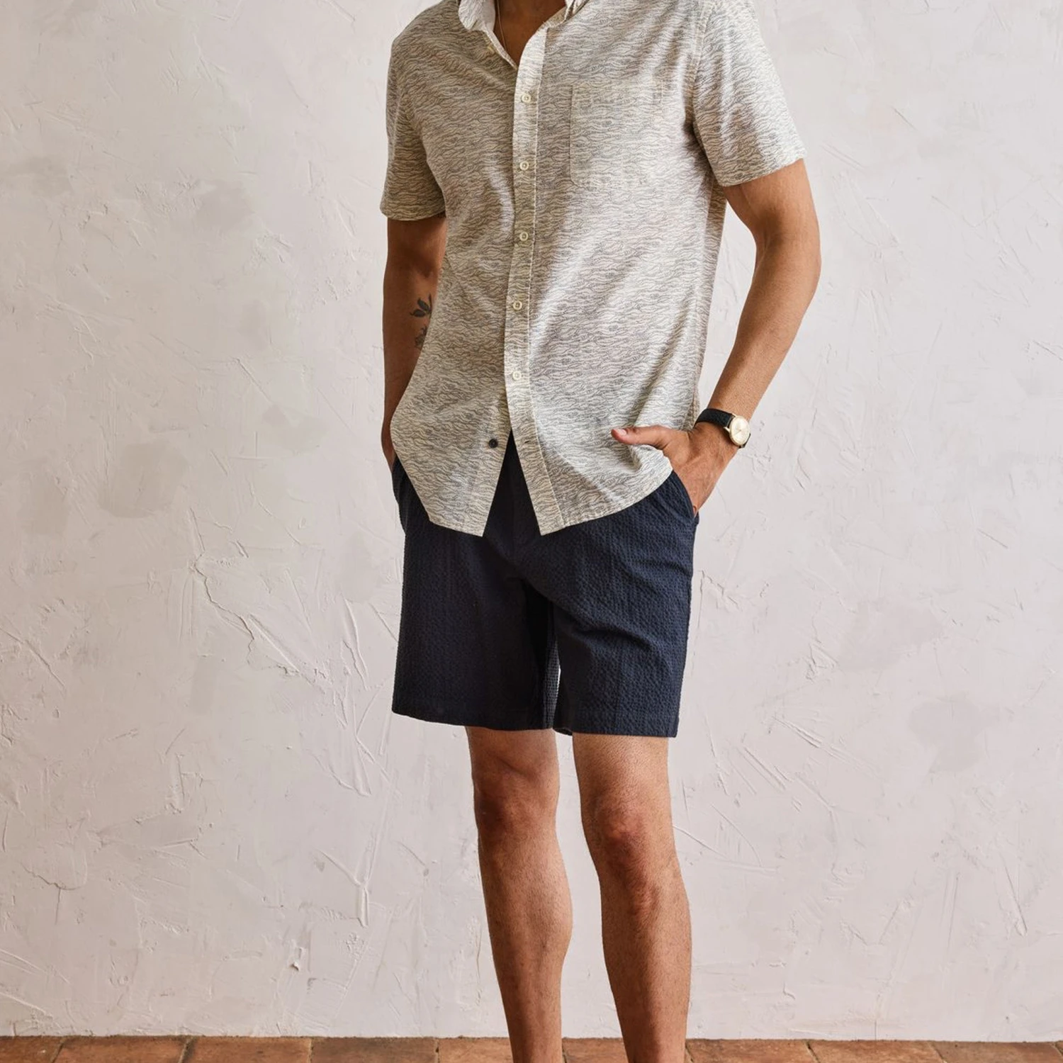 The Easy Short in Heather Navy Seersucker from Taylor Stitch