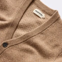 The Eddy Cardigan in Camel Herringbone Merino from Taylor Stitch