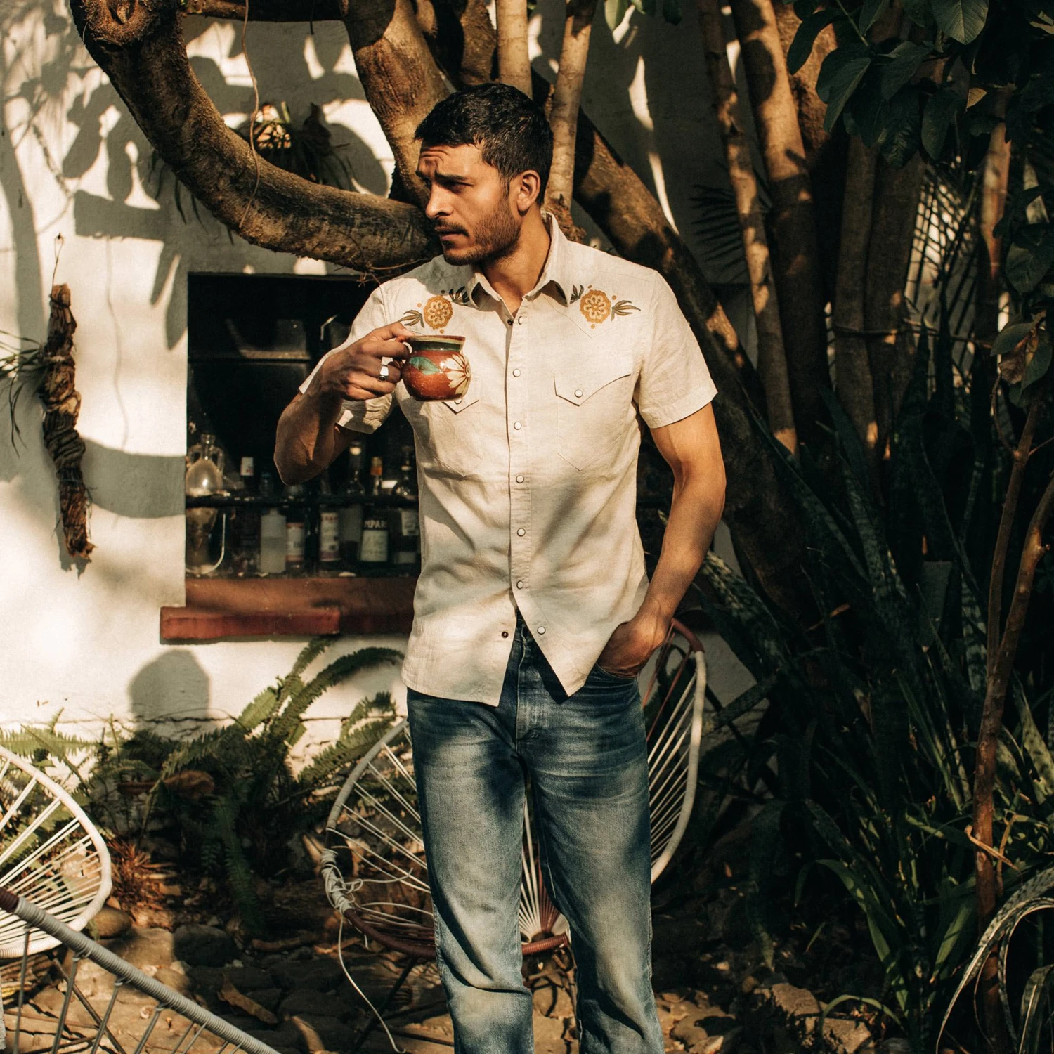 The Embroidered Short Sleeve Western in Natural from Taylor Stitch