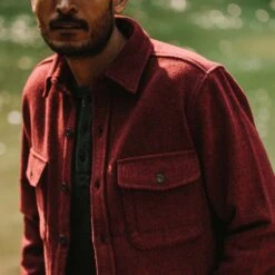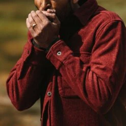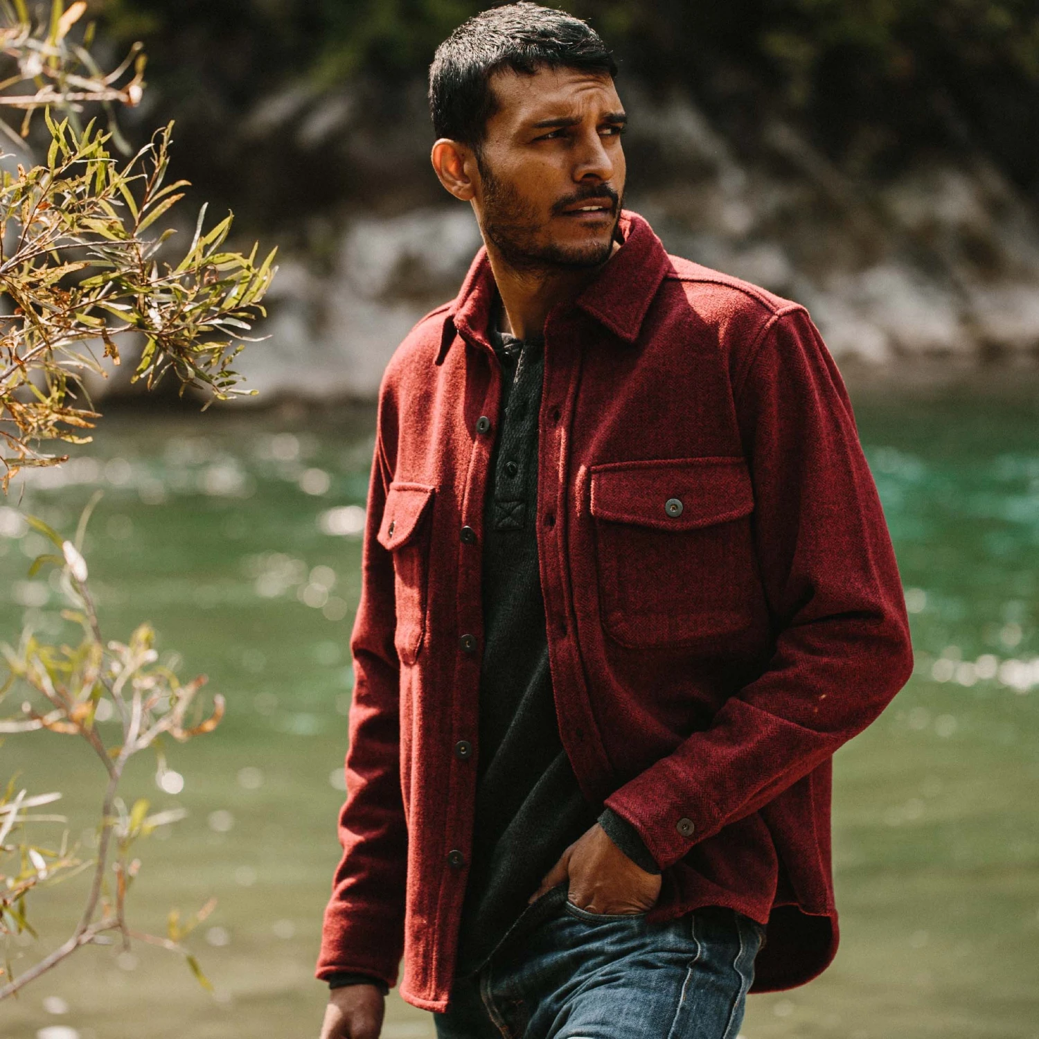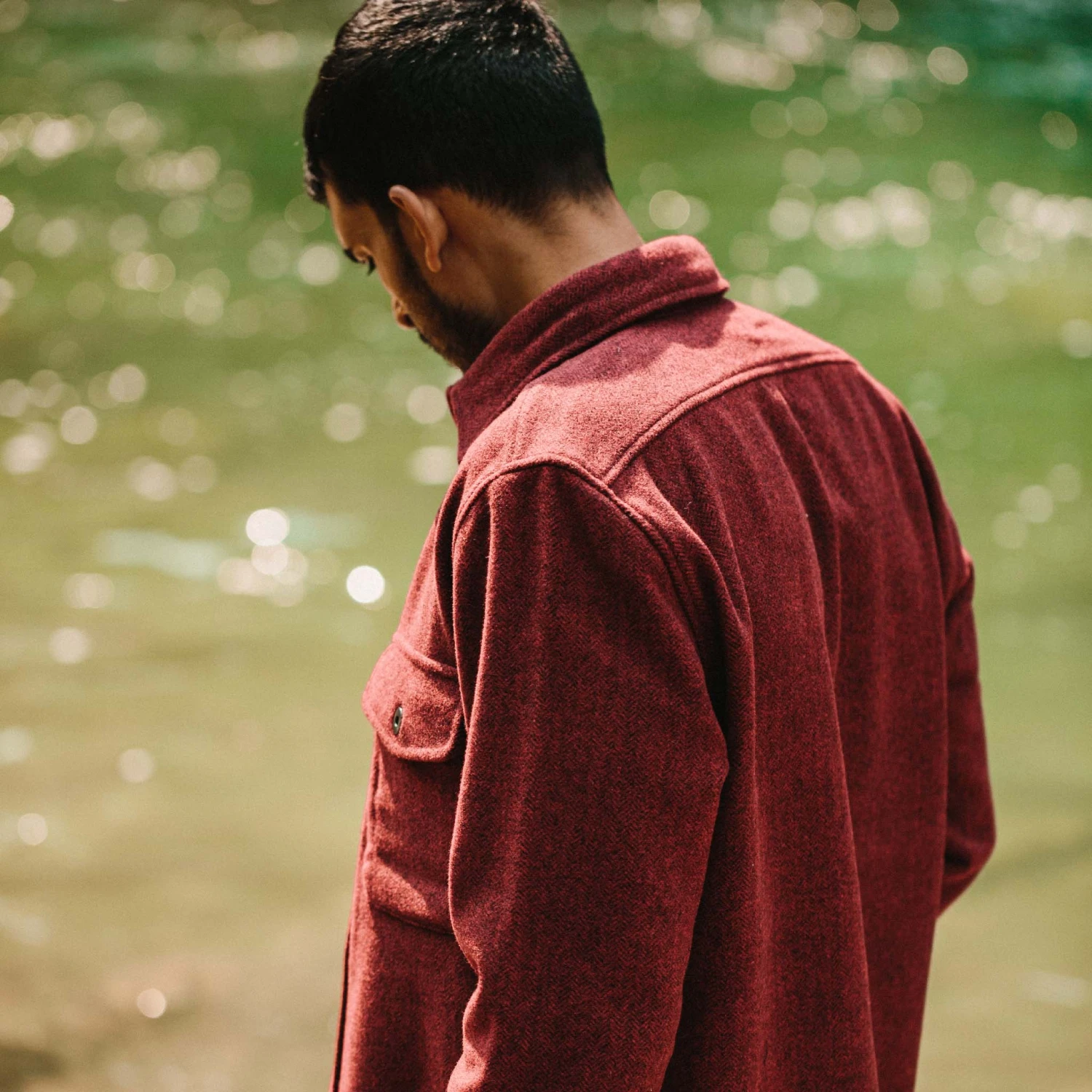 The Explorer Shirt in Burgundy Herringbone Wool from Taylor Stitch