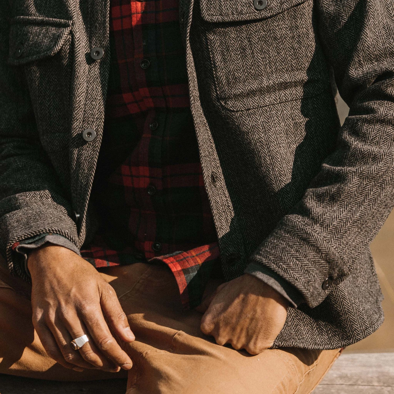 The Explorer Shirt in Coal Herringbone Wool from Taylor Stitch