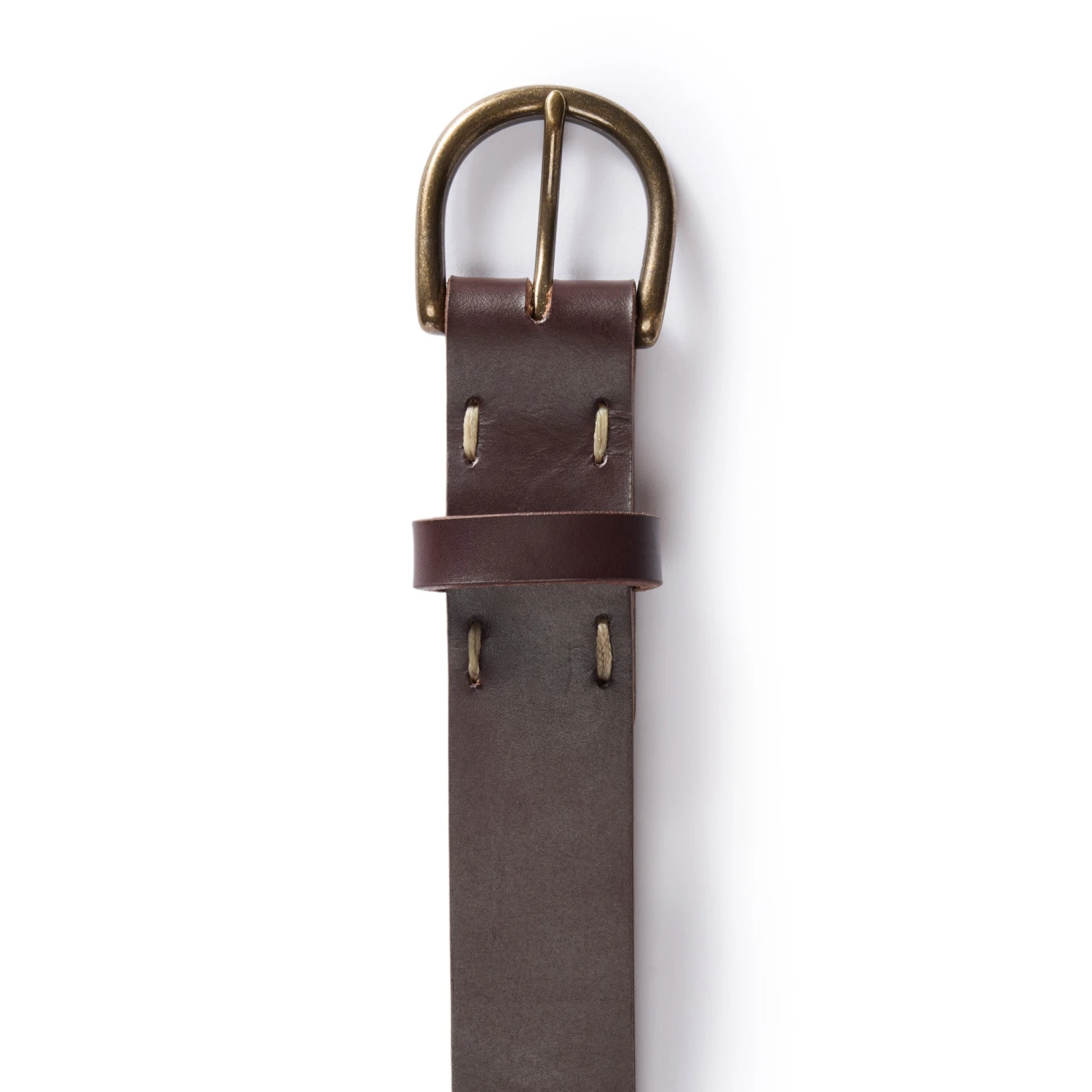 - Rounded antique brass buckle.