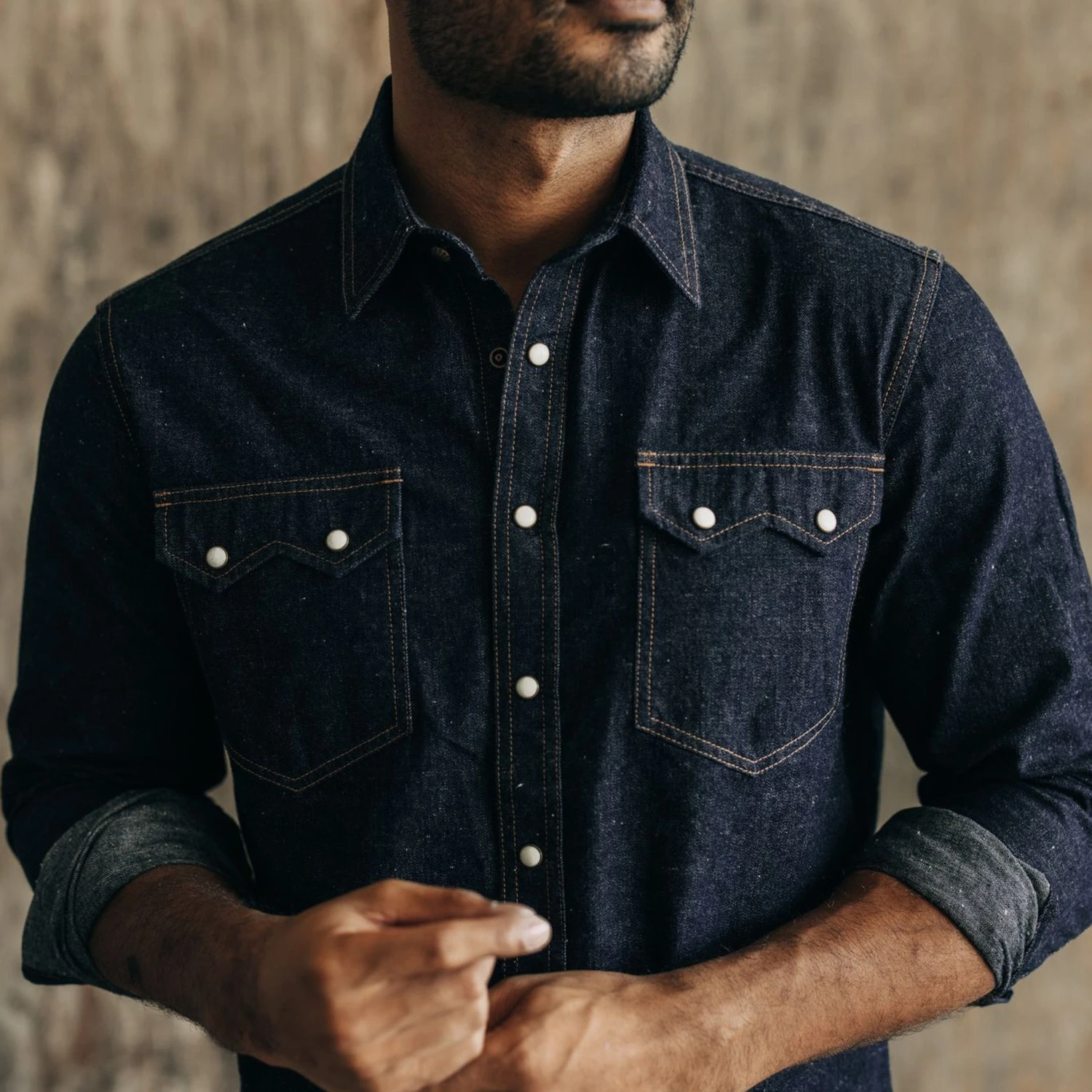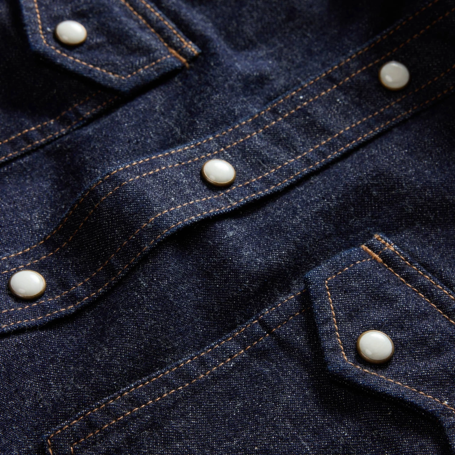- Genuine YKK western snaps with an antique brass setting.