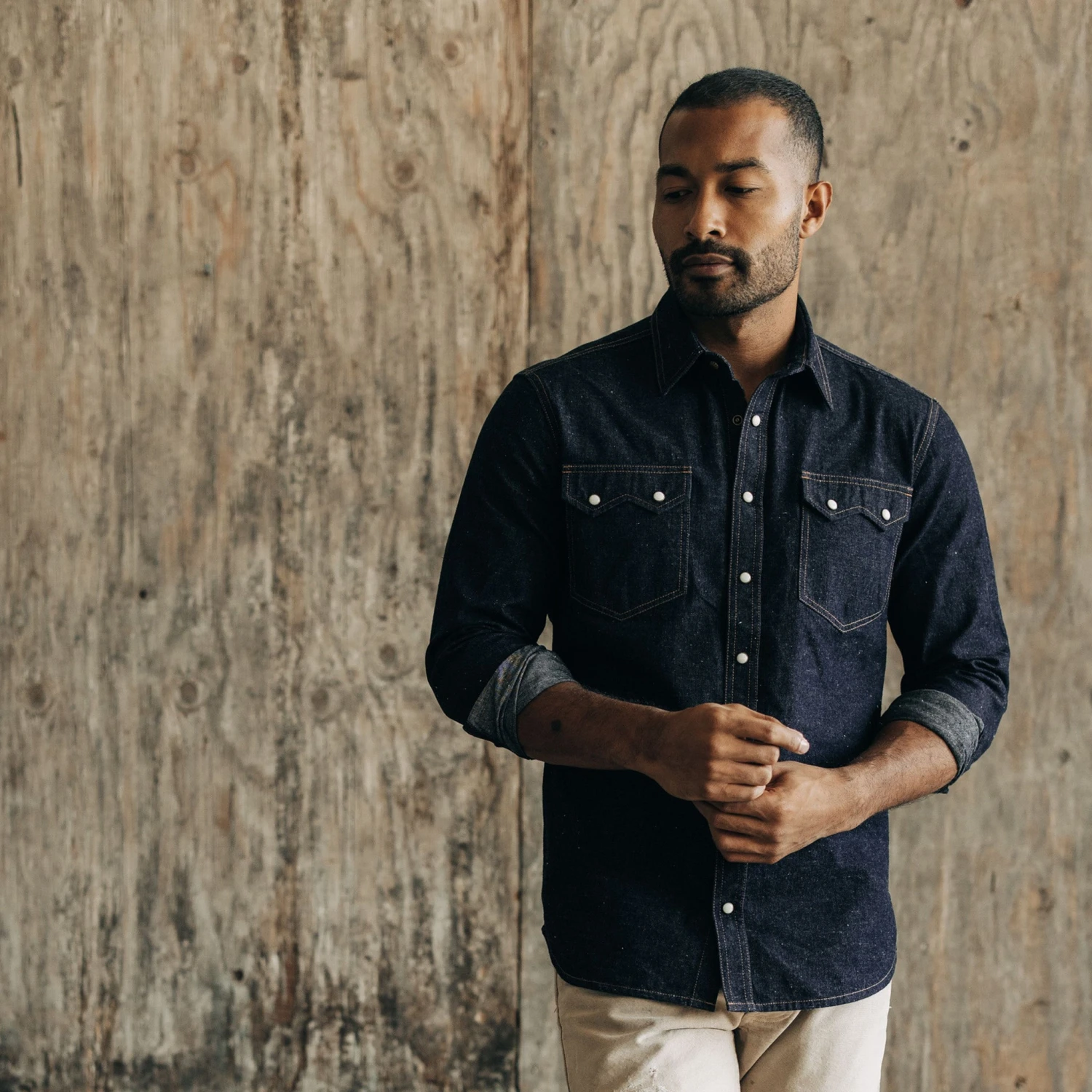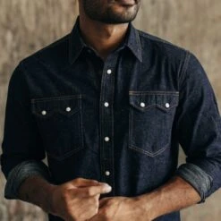 The Frontier Shirt in Rinsed Indigo Denim from Taylor Stitch