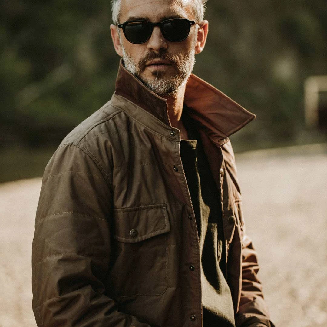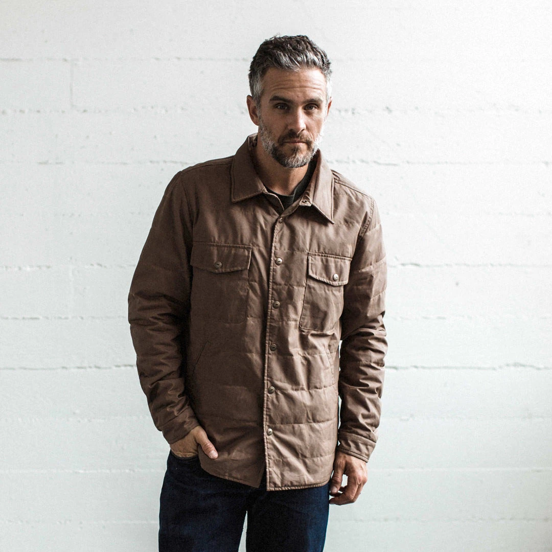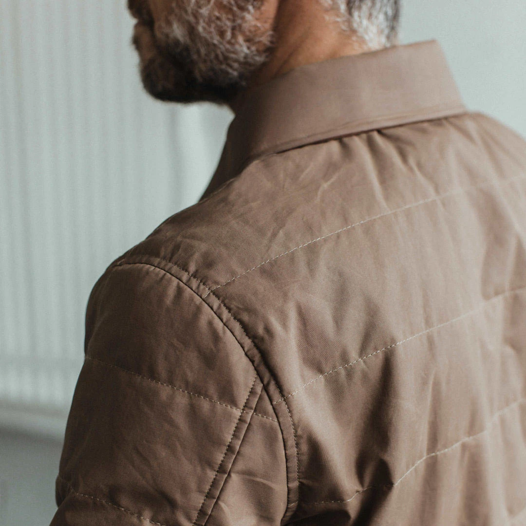 Lightweight, yet built like a bunker. The Garrison Shirt Jacket in British Khaki Dry Wax by Taylor Stitch.