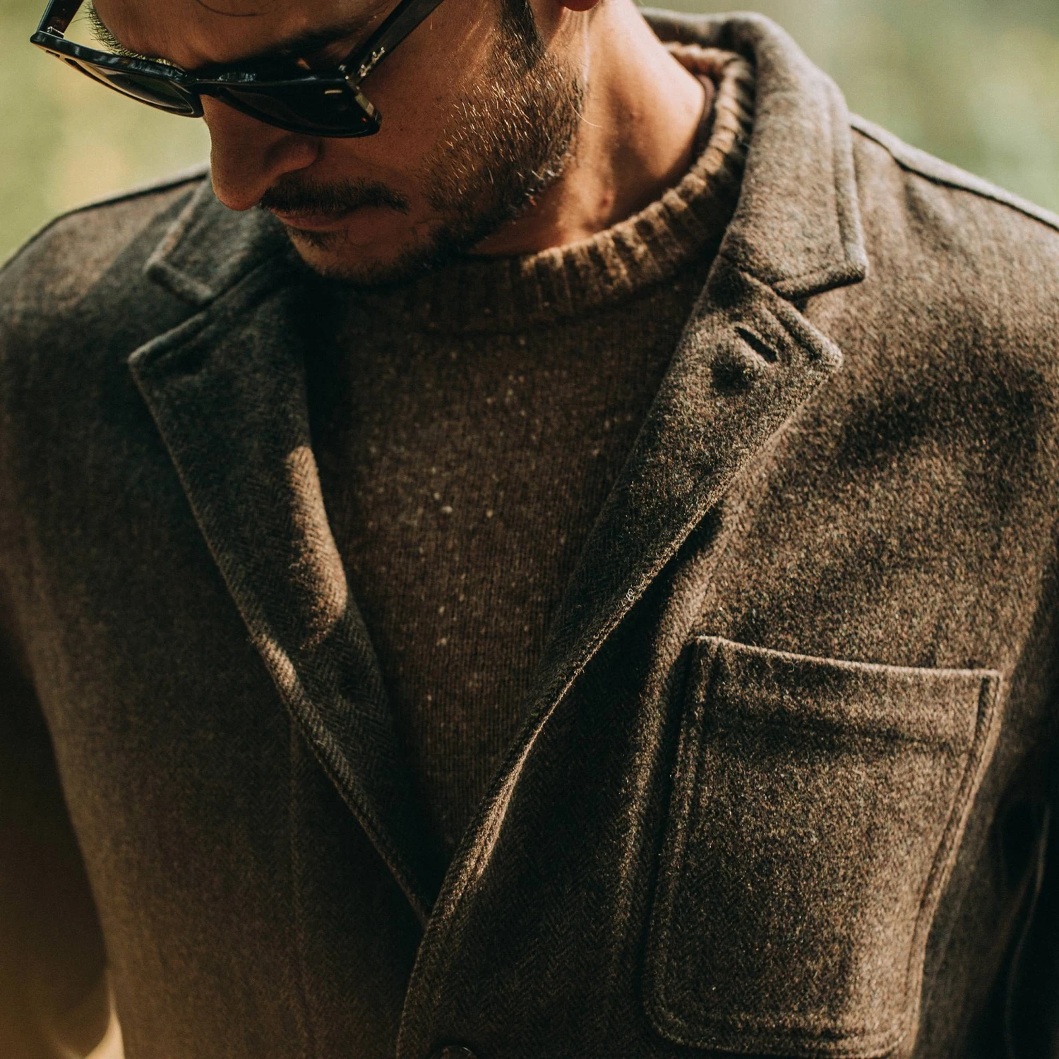 The Gibson Jacket in Olive Herringbone Wool from Taylor Stitch