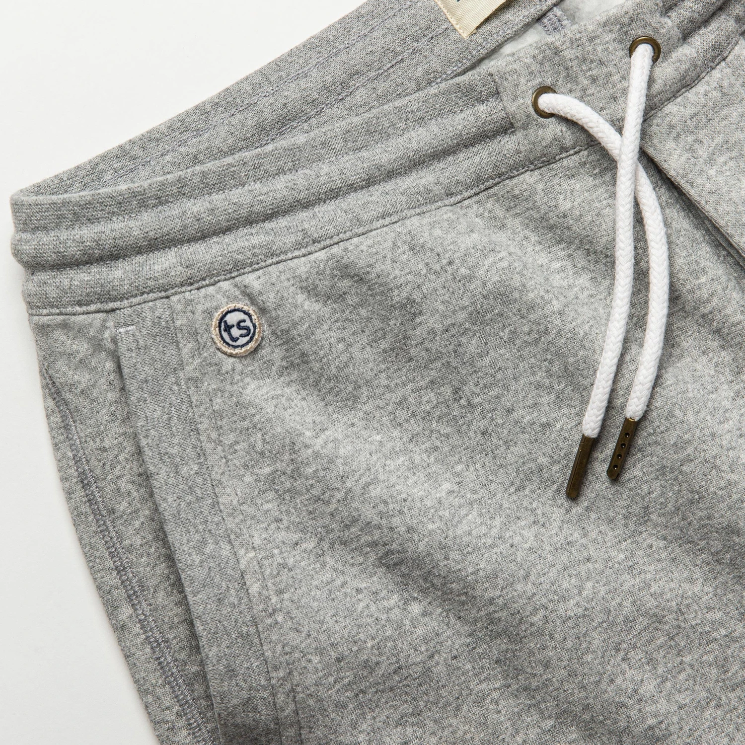 - Natural cotton rounded drawcord with antique brass tips.