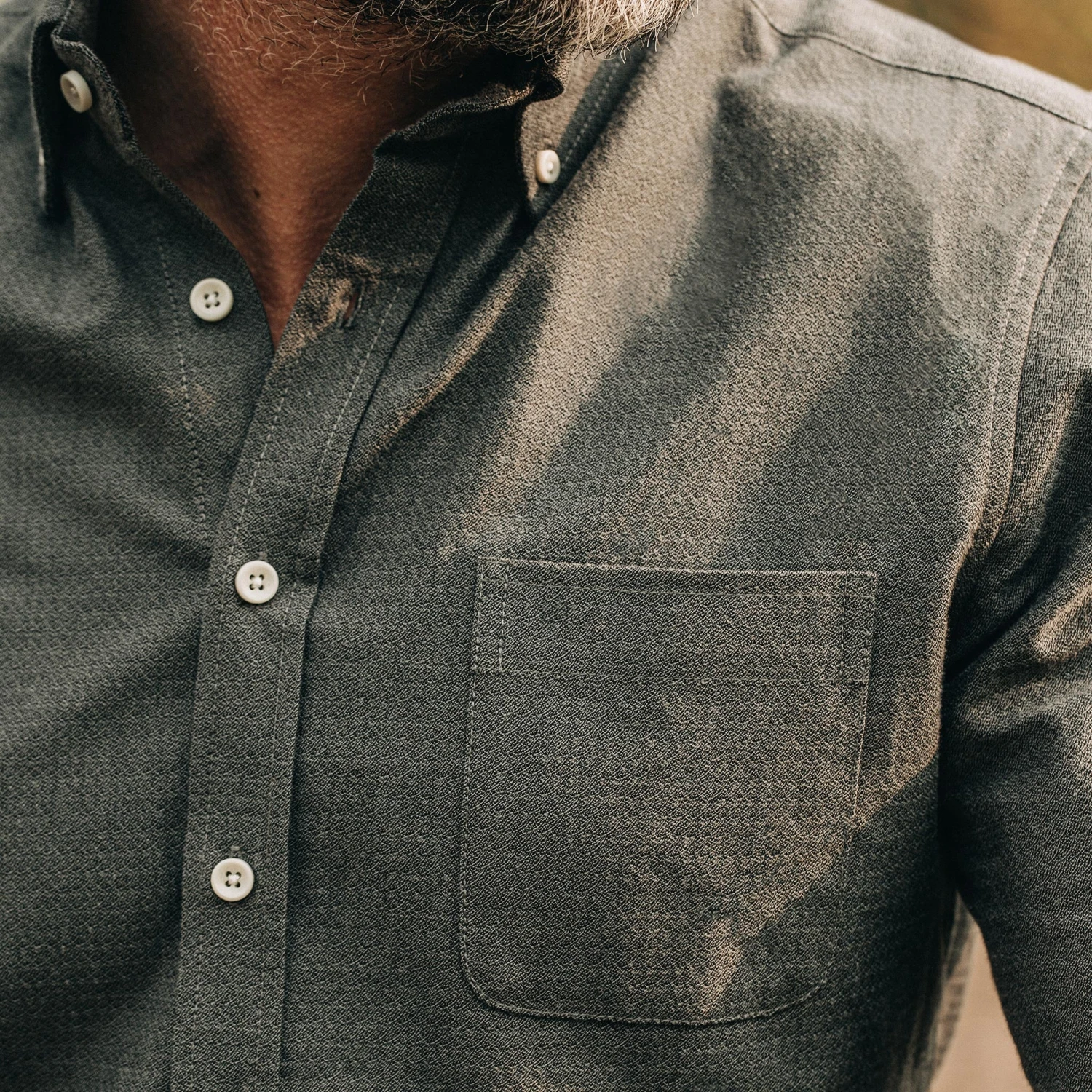 - Single rounded chest pocket.
