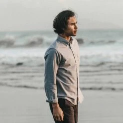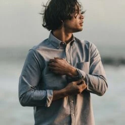 Our staple shirt has a tailored fit with a triple button collar. 7 years in the marking, this classic charcoal oxford is never understated. Shop Essentials.