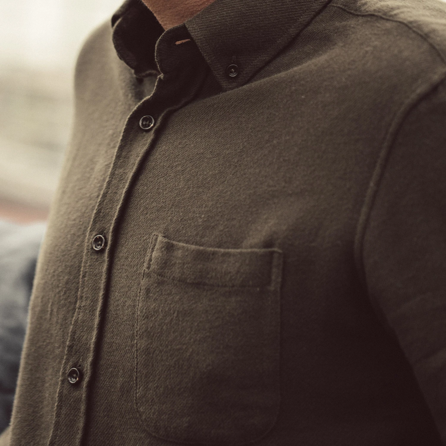 The Jack in Olive Brushed Organic Cotton from Taylor Stitch.