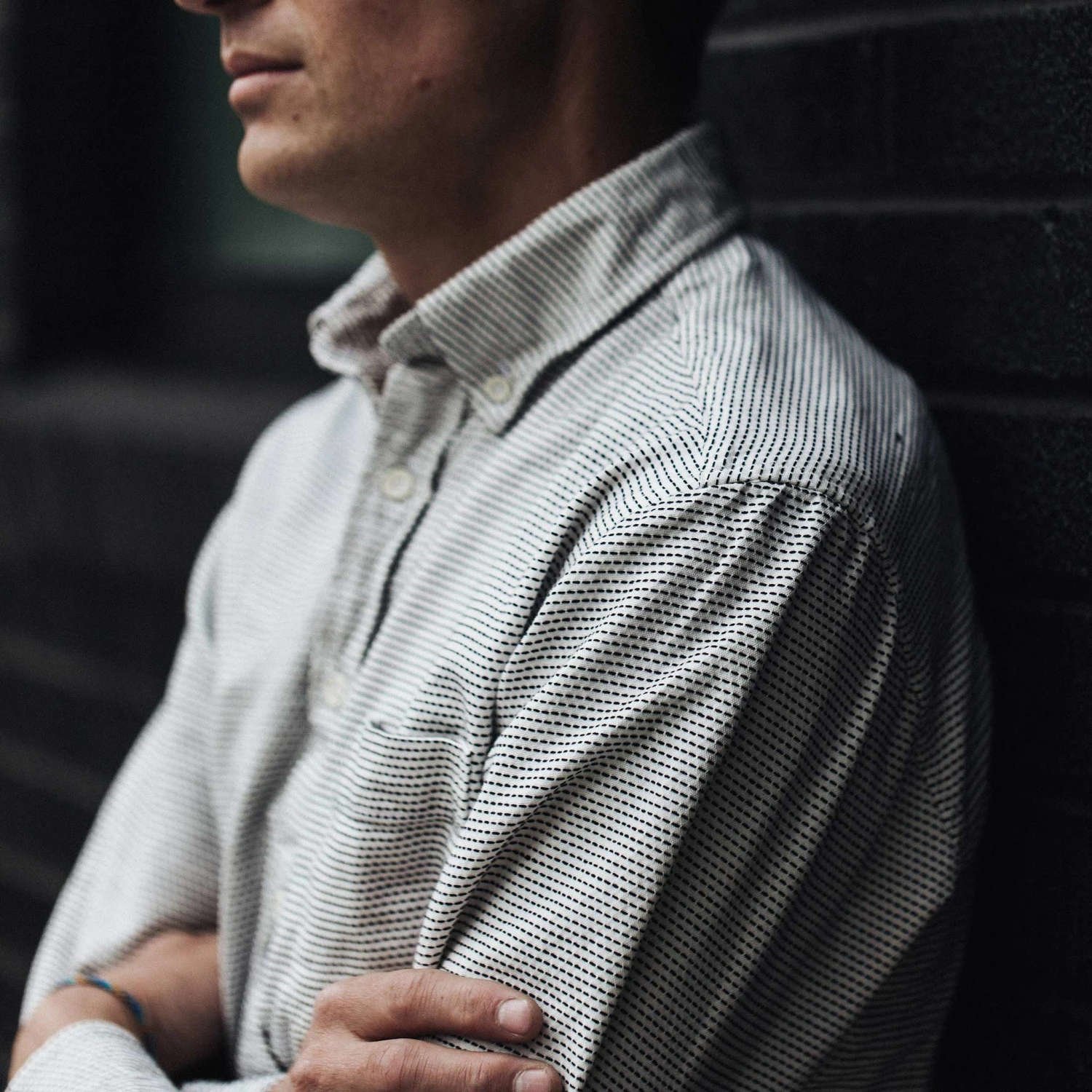 - Our signature Jack button down collar.