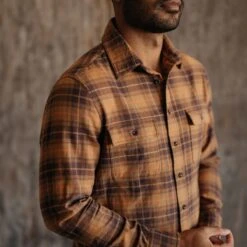 The Ledge Shirt in Tarnished Brass Plaid from Taylor Stitch
