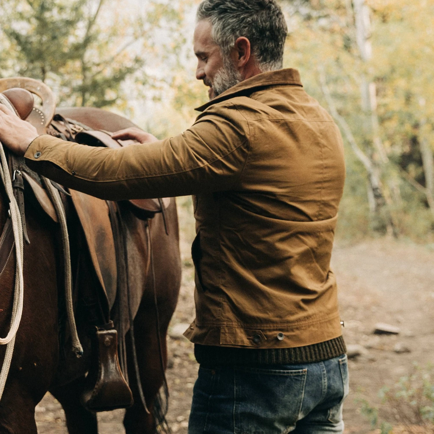 The Lined Long Haul Jacket in Harvest Tan Dry Wax from Taylor Stitch