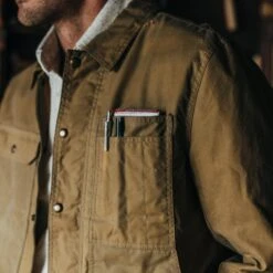 The Lined Longshore Jacket in Harvest Tan Waxed Canvas from Taylor Stitch