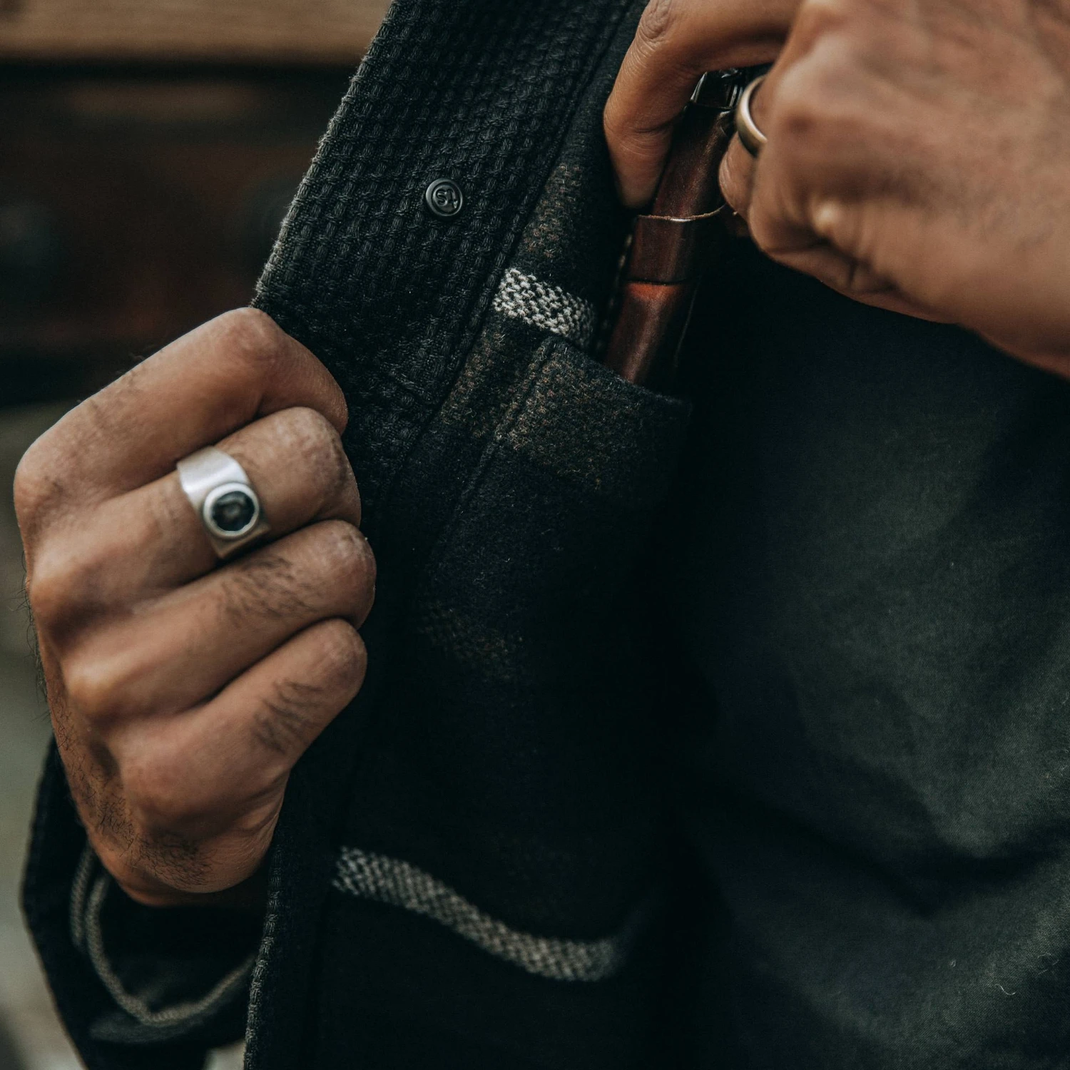 - Front welt hand-warmer pockets.