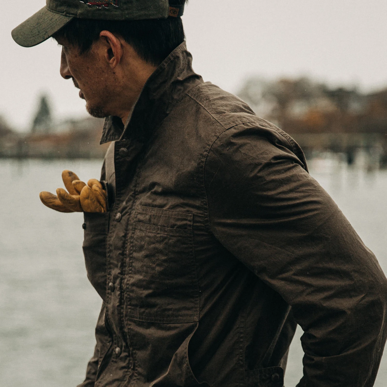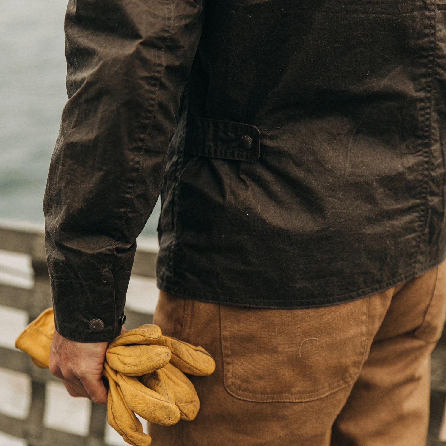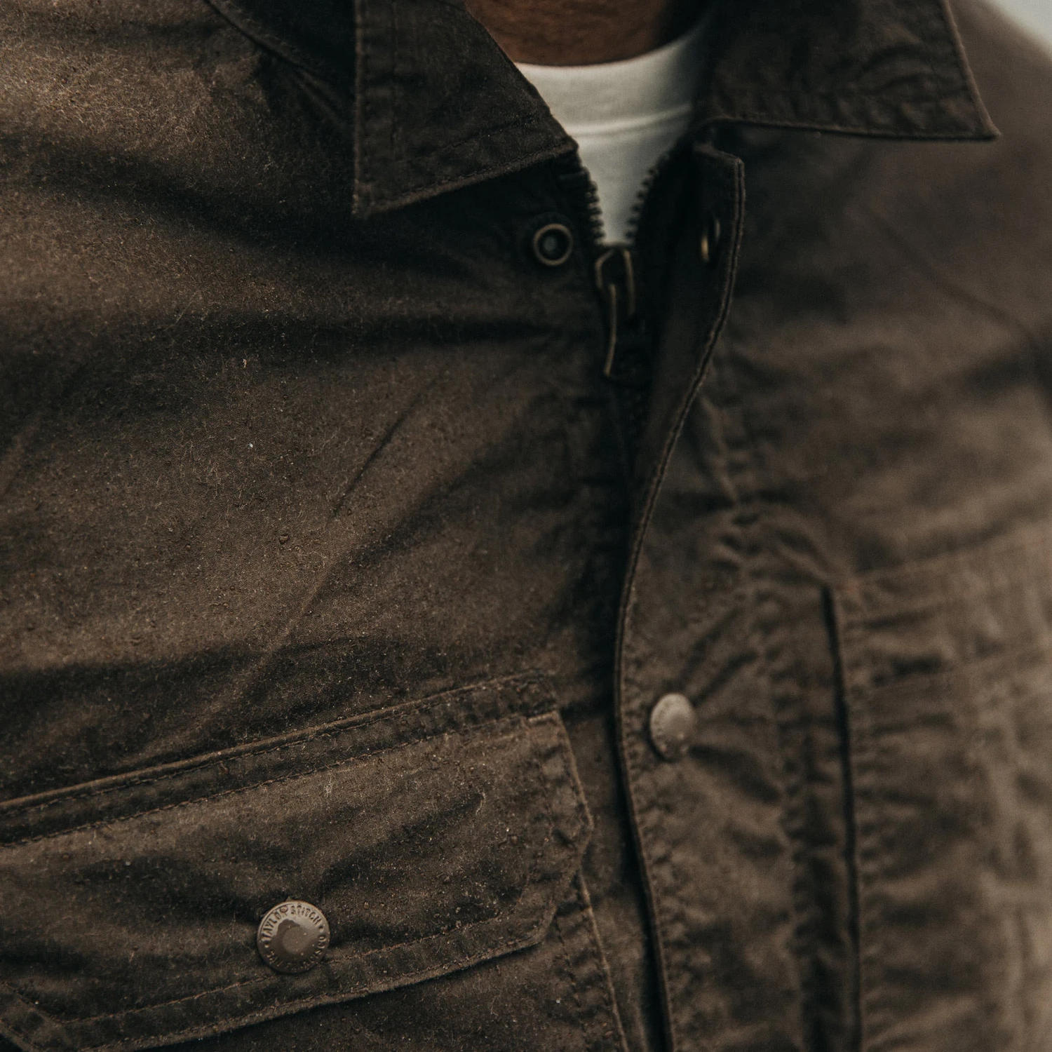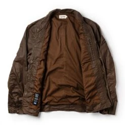 The Longshore Jacket in Dark Oak Waxed Canvas from Taylor Stitch
