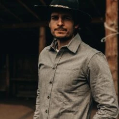 The Mechanic Shirt in Slate Herringbone from Taylor Stitch