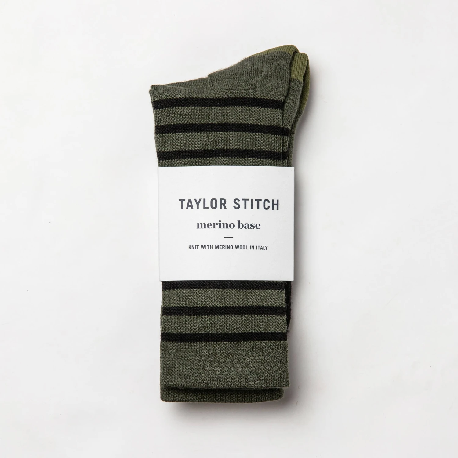 The Merino Sock in Olive Stripe from Taylor Stitch.