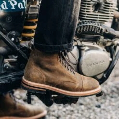 The Moto Boot in Golden Brown Waxed Suede from Taylor Stitch