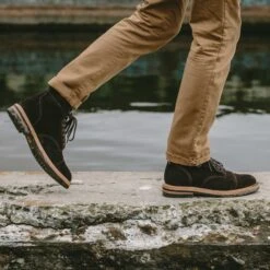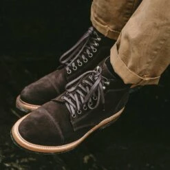 The Moto Boot in Weatherproof Chocolate Suede from Taylor Stitch.